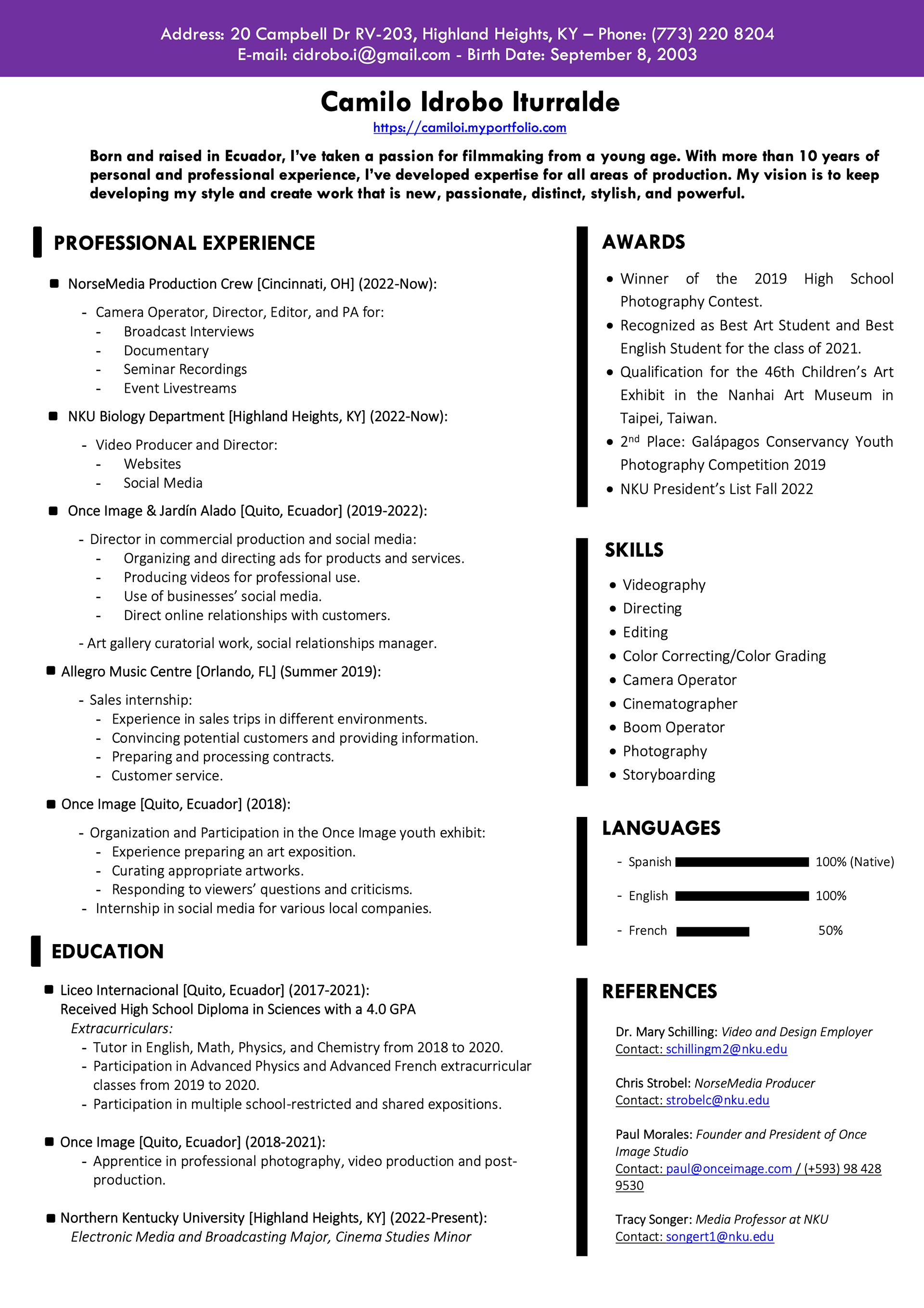 Camilo Idrobo Iturralde had his start in his home country of Ecuador 🇪🇨, where, in his youth, he decided to grab the nearest camera and take on the world. He taught himself the basics of film and video, and later sought on professional mentorship on photography.